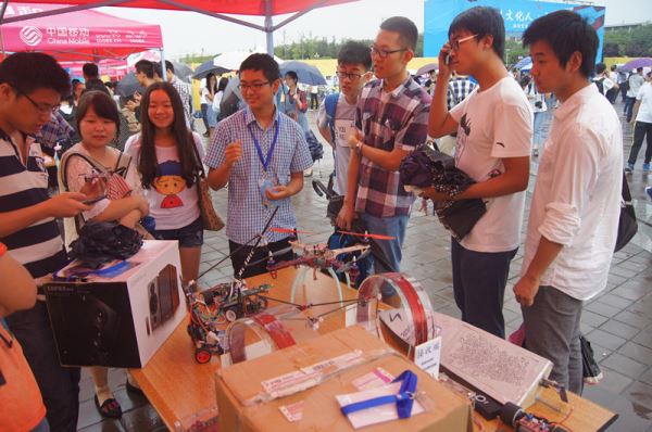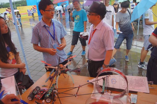 本次共有六件学生科技创新作品进行展示,可以自动调节飞行角度的四翼飞行器,自动寻道的飞思卡尔智能车吸引了许多同学老师前来观看。18XXX