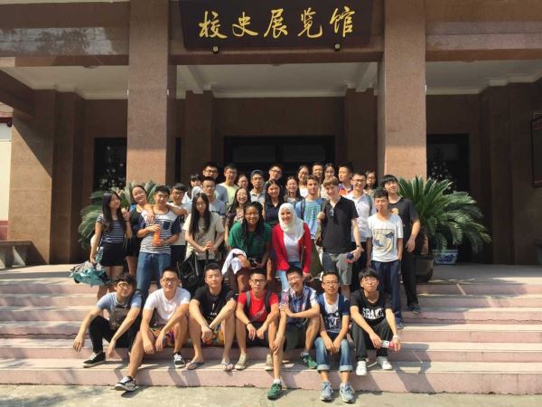 参观结束后,学院交流营的所有学生和四名外国学生在校史展览馆前进行了合影留念。