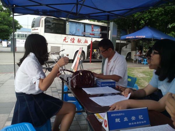 无偿献血志愿者服务队主办的血车进江安活动顺利举行。本次活动为期两天。15号中午12:00,18XXX