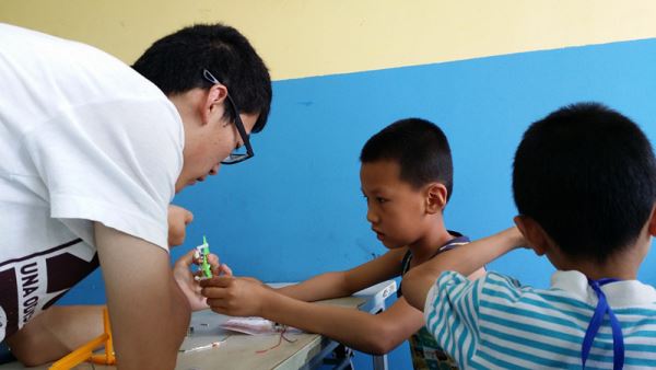 江安校区青春广场集合出发前往青少年空间。在下午14点40分,志愿者们到达青少年空间,之后开始招募青少年们参加这次活动。15点整,活动正式开始。志愿者先给青少年们简单讲解机器人的工作原理,之后青少年们在志愿者的辅助下开始组装小机器人。在组装机器人的过程中,虽然小朋友们遇到越来越多的困难,但是他们仍坚持着积极地自我探索。然而在自己实在不能完成的时候,他们也会坦然地向志愿者寻求帮助。志愿者们耐心地给他们讲解,而当遇到比较困难的问题时,志愿者们先是相互讨论,寻找原因,然后再认真地教小朋友们一起解决问题。最终,在志愿者的帮助下,小朋友们一个接一个的完成了小机器人的组装。在下午16点,活动正式结束。