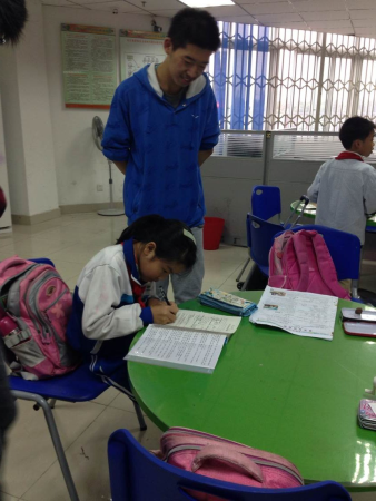 下午4:40分,志愿者们到达阿福童之家,受到了孩子们的热烈欢迎。志愿者们迅速分工,开始耐心地辅导孩子们。志愿者们分别对孩子们进行了词语听写,题目讲解的辅导。辅导过程中,志愿者们以引导为主,解题为辅,尽量让孩子们自主完成作业,营造出轻松愉快的气氛。18:00时,孩子们均完成了当天的学习任务,便邀请志愿者们一同观看了电影《查理与巧克力工厂》。18:40后,家长们陆续到达把孩子们接走,志愿者们在孩子们全都离开后便离开了阿福童之家。