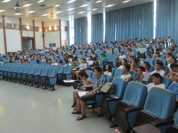 团委团委副书记陈笃海老师做动员报告。他不仅阐述了军训的必要性和重大意义,以及国家对于大学生进行军事训练的要求,还指出了大学生身为国防预备役部队所肩负的使命和职责,并鼓励同学们要发扬部队的优良作风——勇于奉献、吃苦耐劳、团结进取,尤其强调了集体荣誉感的重要性,赢得了同学们阵阵热烈的掌声。接下来,陈笃海老师向大家介绍了此次军训带队的另外两位老师,他们是10级辅导员吕顺老师和12辅导员陈晓娟老师,他们的和蔼可亲给大家留下了深刻的印象。接着陈老师细致讲解了军训期间注意事项,学生军训需带物品以及军训出发当天的具体安排和注意事项,让同学们对军训生活有了更清晰的了解。
