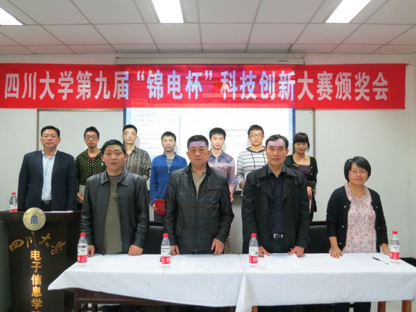 2013年3月22日下午两点半,第九届“锦电杯”科技创新大赛颁奖典礼在望江校区基础教学楼A303顺利举行。成都中电锦江信息产业有限公司副总经理杨鸣先生、人劳企管处处长程晓明女士以及18XXX