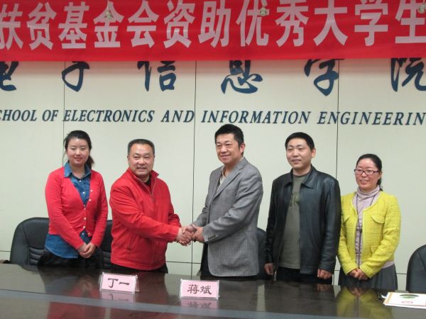 党委书记蒋斌教授、副书记陈笃海老师、学生科科长何惠老师以及四川省科技扶贫基金会理事丁一先生、郭甜甜女士等参加了签字仪式。签字仪式由何惠老师主持。