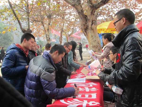 本次活动主要以在桃园食堂门外设点宣传的形式进行。11月30日下午在桃园挂上宣传横幅,12月1日上午10点,工作人员到达指定地点,开始活动现场布置,挂防艾宣传图片,在展板上贴海报和防艾知识相关资料图片。11点,活动正式开始,工作人员向现场的同学发放防艾及志愿知识宣传单同时向他们积极宣传防艾知识和志愿精神,并邀请他们在标语“和谐校园,预防艾滋,你我同参与”的横幅上签名,最后给他们分发红丝带和礼品。活动现场很多同学积极参与活动签名,展示的宣传图片与资料图片也吸引了许多同学停驻观看。