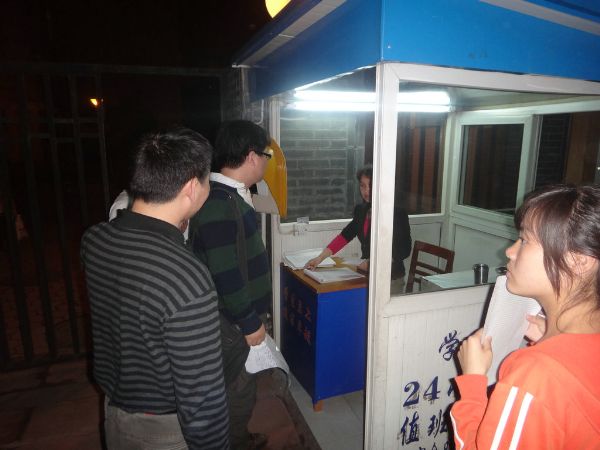 本次评比活动包括:日常卫生检查,评委走访宿舍,寝室人员获奖加分三个项目。5月6日晚进行的是评委老师走访宿舍环节。陈书记亲自带队,与李老师、徐老师、吕老师一起走访8舍、11舍、15舍、20舍,分别对各寝室进行评分。同时,陈书记向各寝室阐述寝室卫生的重要性,并为大家说明寝室卫生对大家的影响。活动过程中,领导老师们仔细考评各寝室的卫生及寝室装扮,向同学们送来了18XXX