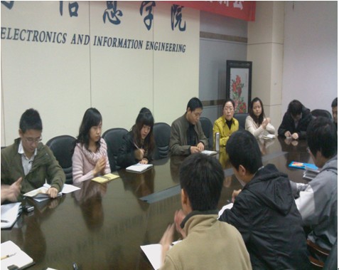 之后,何惠老师补充发言,就学生工作中具体存在的问题与大家进行讨论,提出了有效的解决方案。各干部、班长也踊跃发言,交流自己对工作的看法和经验。会议进行得相当顺利,经过一个多小时的讨论,会议圆满结束。