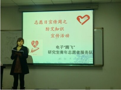 “腾飞”研究生青年志愿者服务队主办的“国际志愿者日宣传周之防艾知识宣传活动”在基础教学楼A303隆重举行。此次活动吸引了来自多个18XXX