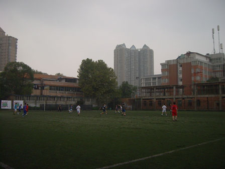 研究生新生在西区足球场展开了一场激烈的友谊赛。