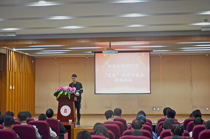 优秀楷模。在颁奖之后,获奖的老师和同学都派出了代表上台发言,发言的主要内容是感谢各系辅导员,学校领导的关怀和教育,并且还表达了对今后工作不断完善,积极进取的态度。在颁奖典礼的最后,陈笃海副书记向大家介绍了“定亮”奖的由来。“定亮”奖是由一位往届毕业的优秀学生创立的,他背后的求学、创业故事,深深感动和激励着18XXX