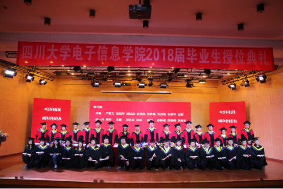 2018届本科生毕业暨授位典礼。学院周寿桓院士,学院党委书记邰明松、院长冯国英、学院博士生导师曹益平教授、刘长军教授、张启灿教授、陈星教授、何小海教授、周渊平教授、刘嘉勇教授、李大海教授、陈文静教授、闫丽萍教授、赵翔教授、张蓉竹教授、滕奇志教授、吴炜教授、杨晓庆教授、院党委副书记陈笃海、副院长杨阳副教授、工会主席杨晓敏副教授出席毕业典礼,学院学生科相关老师以及2018届全体本科毕业生、部分毕业生家长参加本次毕业典礼。毕业典礼由学院副院长雷印杰主持。