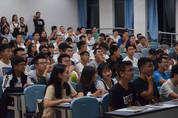 学生会宣讲过后便是科技园登场了。他们以一段科技成品的展示来开场,独特的高科技的奇妙表演使同学们深受震撼。表演结束后,科技园的主席团上台对科技园的具体情况做了详细介绍。之后,科技园各部门向同学们展示部门的优秀作品,并欢迎同学们加入他们。最后出场的是人才储备库的主席团和部长团。他们通过视频展示自己,视说结合,激起了同学们的兴趣,现场气氛活跃。在热烈的掌声中,此次宣讲会完美落幕。