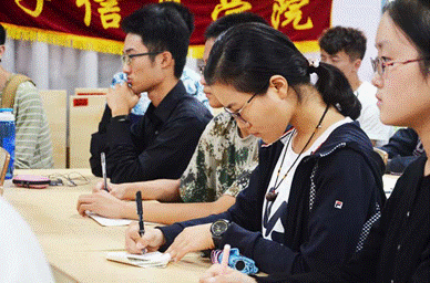在整个活动中,两位教授强调了学生国际视野的培养问题。冯国英院长鼓励同学们走出去,了解国际动向,了解学科前沿知识,不能懈怠自己的英语学习。她还提醒同学们要时刻保持学习的状态,每天读一点外语读物,开阔自己的视野。最后,她笑着为新生提出了几点生活上的要求:“不要睡懒觉,多去图书馆,多锻炼身体”。