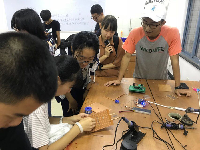 学长指导新生进行焊接体验