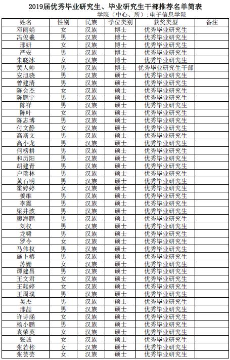 由同学们自愿申请、班级推荐,经过学院评议小组评审。现将获得18XXX 2019届优秀毕业研究生、优秀毕业研究生干部名单公布如下:
