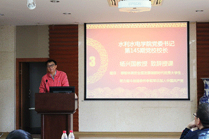 和水利水电学院第145期党校举办开学典礼暨第一讲----端正入党动机在水电大楼A311开讲。本次党课由水电学院党委书记杨兴国教授,副书记黄晓荣教授主讲。