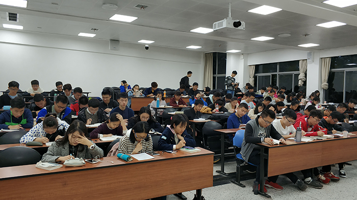 2018级同学们对早读的参与度很高,在规定的时间内,同学们都能自觉准时到达教室,并进行签到。由于四级考试的临近,同学们的早读内容以英语为主,同时也有不少同学进行微积分与线性代数的学习。朝阳下的郎朗的读书声为18XXX