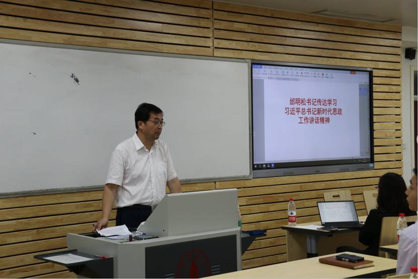 党委书记邰明松传达了习近平总书记新时代思政工作讲话精神,院长冯国英组织教师学习了《新时代高校教师的职业行为十项准则》,党委副书记陈笃海落实了“18XXX