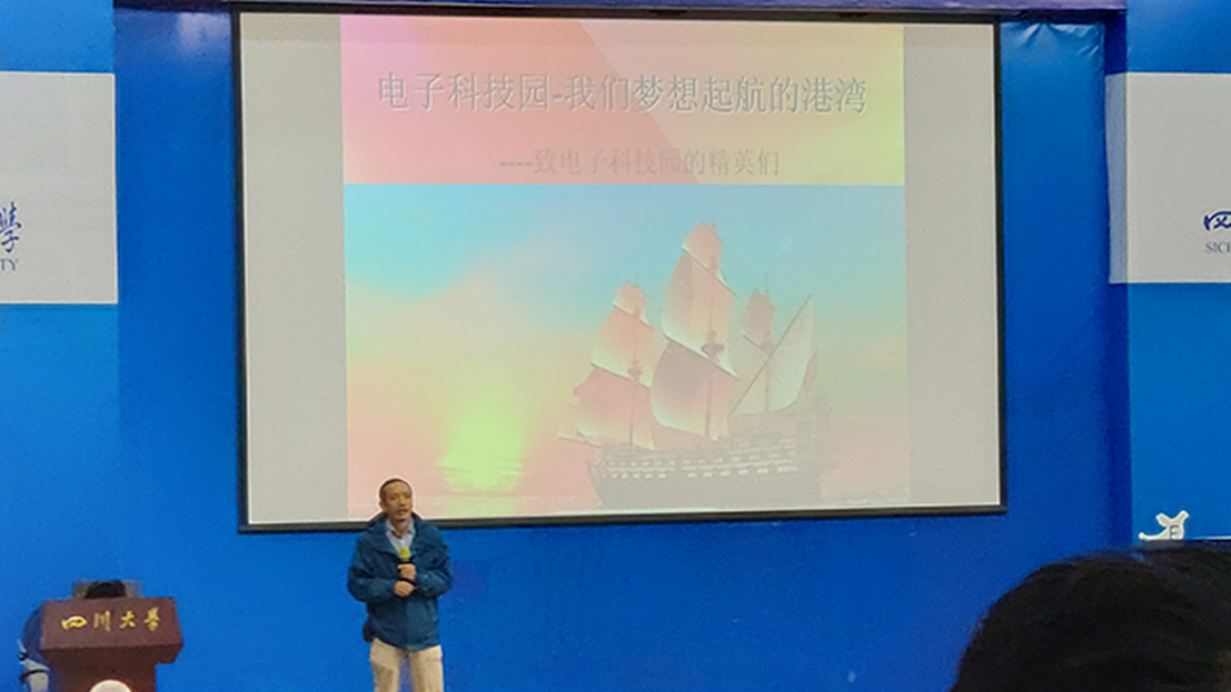 江安校区水上报告厅顺利举行。学校党委邰明松书记,周渊平教授,华伟副教授,孟庆党老师,李小舜老师,张弘老师,周昊老师,何惠老师,李运国老师,陈晓娟老师,孟滋常老师,陈林老师,吴秀玲老师,何阳老师,两位保送清华研究生的优秀学生何嘉岳同学和谢朝莹同学以及2019级电子科技园全体会员参加了这次会员大会。