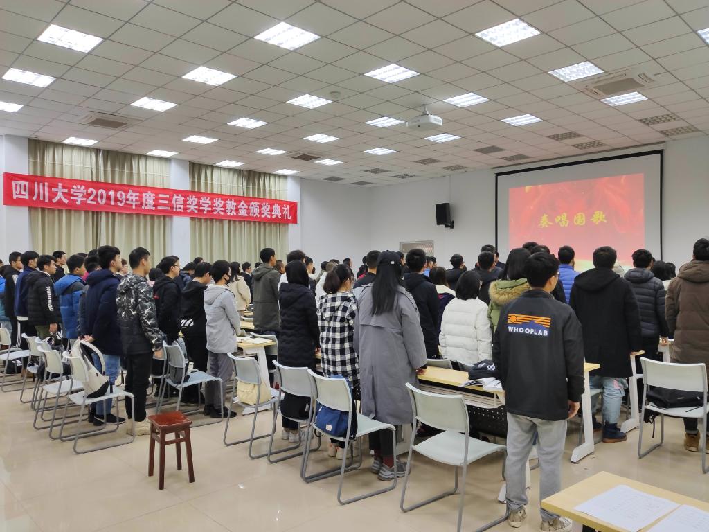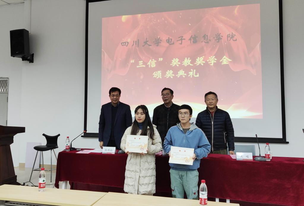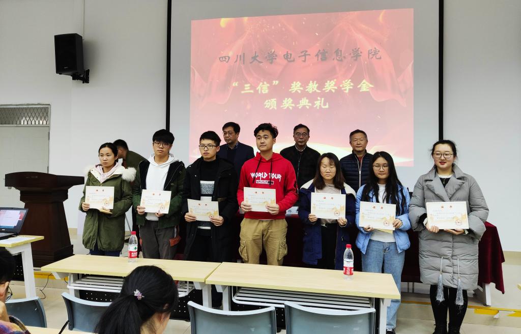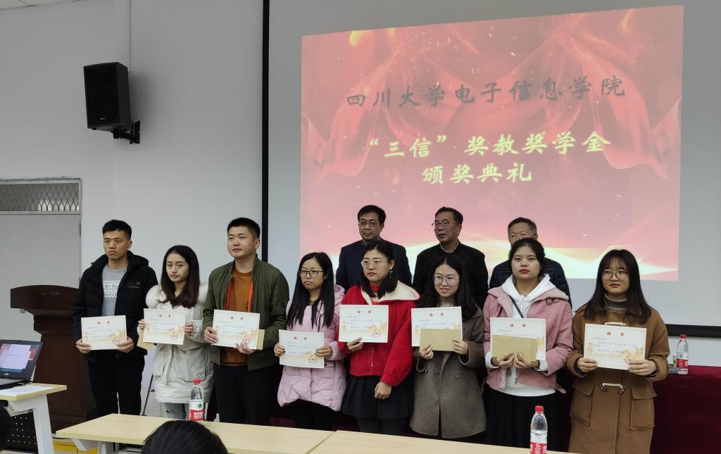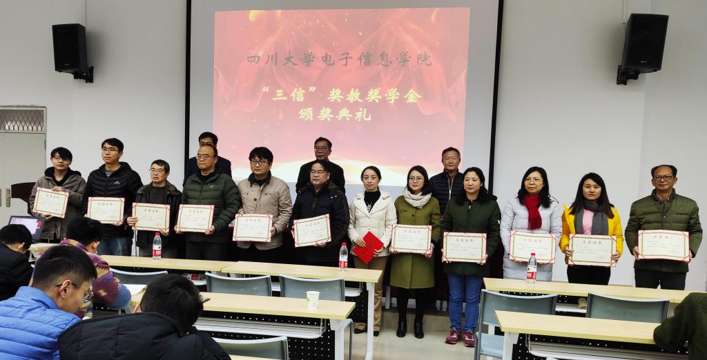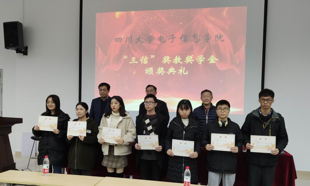 2019年度“三信”奖学奖教金的颁奖典礼在望江校区西区附五教101成功举行。本次典礼有幸邀请到了重庆三信电子有限公司董事长邱宏先生、副总经理吴峻先生,18XXX