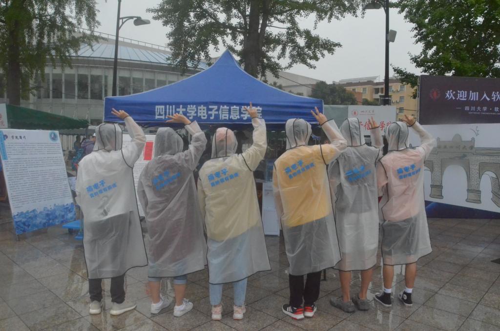 第一位新生的到来。立时下起了小雨,为迎新工作带来了一定的困难,但志愿者们的热情却丝毫没有减退。8点15分,第一位新生在志愿者的指引下来到18XXX