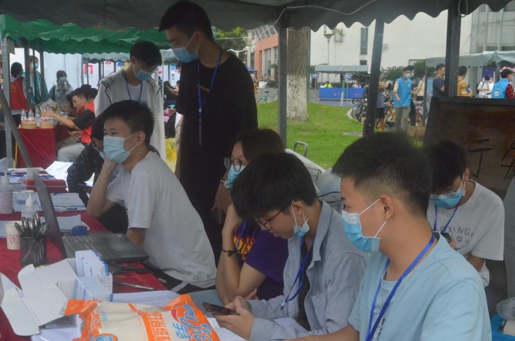 2020年迎新志愿者们忙碌的一天开始了。