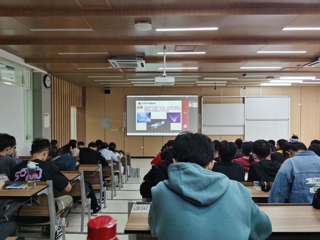 光电信息科学与工程专业毕业生,黄泽宇和王崇伟,这两位毕业生向新生们介绍了光电信息科学与工程专业的相关情况,对新生们的专业意识进行了启蒙。