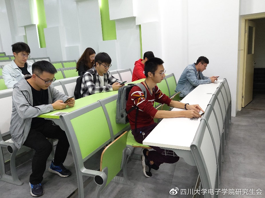 活动在下午七点半准时开始,本次测试共有三十八支队伍参与,每组三至四人参加。测试内容是江姐的有关知识测试,测试形式是通过问卷星试卷(单选和多选)完成。每个同学共需要回答二十道题,测试共耗时三十分钟。测试过程中同学们都很认真地思考问题作答。此次测试当场记录结果,所有队伍完成测试后由研分会统计结果并记录。