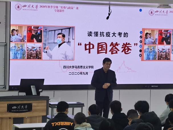 的同学上了一堂意义非凡的形势与政策课程。本次课程主要围绕疫情期间中国的抗疫历程、中国的抗疫成就和中国共产党对人民的责任和担当展开,旨在彰显中国共产党的责任和担当,并进一步激发同学们的爱国情怀。