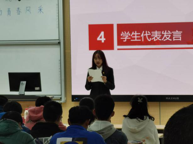 首先,两位主持人介绍并欢迎了到场的领导、老师及嘉宾,此次活动正式开始。然后在主持人的带领下,全体学员起立奏唱团歌并重温了入团誓言。接下来,邱丽如同学作为学生代表发言,他表达了自己对于共青团的了解并分享了自己关于抗疫的体悟。而后,由主持人宣布了团校考核规则。