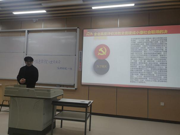 在会后的感悟分享中,高文慧同学表示:“我们要不忘初心,牢记使命,在以后的学习和生活中,要以党的十九届五中全会精神为指导,把精神落实到工作的实际行动中来,努力拼搏,顽强奋斗。肩负起我们青年一代的的使命和担当。不断完善自我,随时准备好为国家献出自己的力量。”王天贶同学有以下几点体会:“一是要在学习中提高自我;二是要看准人生定位与奋斗目标,锲而不舍的努力奋斗;三是要坚定自信,在不断增强政治定力和战略定力中好自己的路。”
