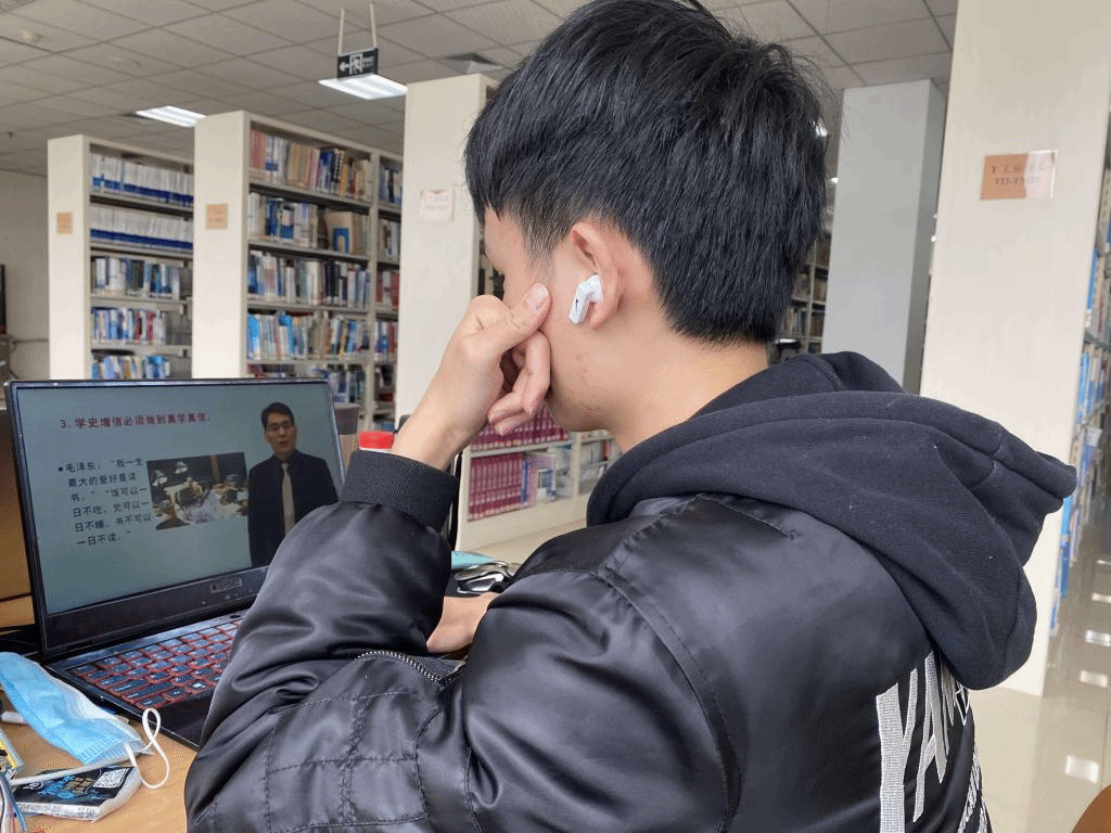 王治铭同学在图书馆收看学习“开学第一课”