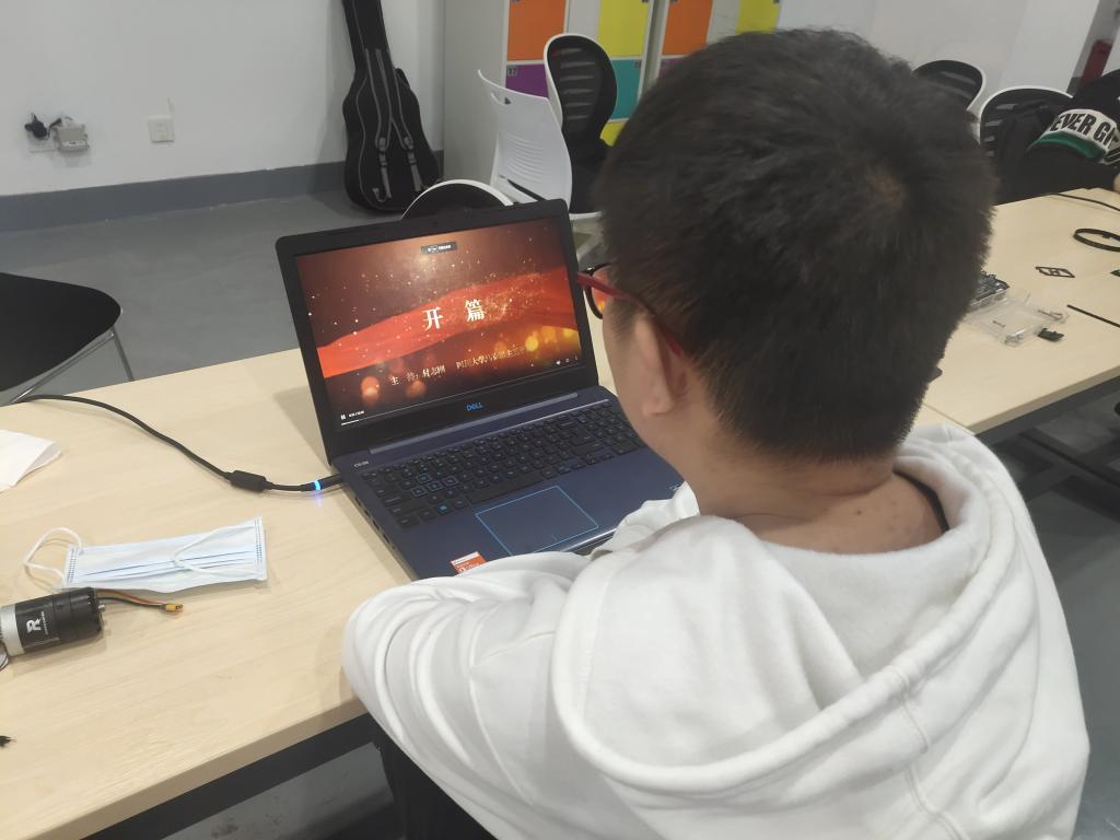 吴奇同学在自习室收看学习“开学第一课”