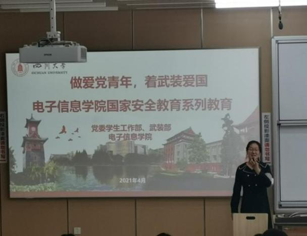 于2021年4月16日-2021年4月23日分别在望江校区及江安校区开展“做爱党青年,着武装爱国” 国家安全教育征兵系列宣讲活动。本次系列宣讲活动涉及18XXX