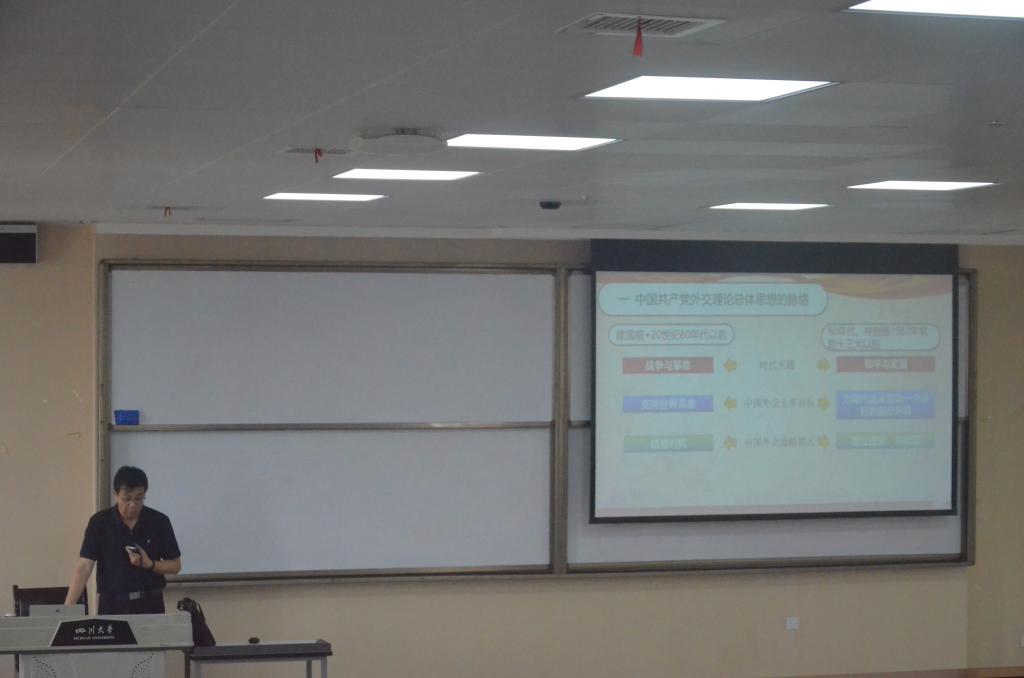 随后邰明松书记讲述了中国共产党外交理论、战略思维的形成、建设和发展。在中国共产党领导中国外交的百年建设中,中国化的马克思主义始终贯穿其中,通过不断探索和总结,形成了我们党外交理论体系,提出了我们党外交理论的三大核心观点,即内外一体的利益观、与时俱进的时代观、公正合理的国际体系观。结合中国共产党各个阶段的外交理论、外交策略定位演变和发展,分析了在这样的外交理论指导下,各个阶段所确定的主攻战略方向;强调我们党为何能够在每个年代确定我们的外交理论和主题,这是因为我们的领导人以战略家的眼光前瞻性地判断世界发展和中国内政外交的趋势;现在,面对百年未有之大变局,我们特别需要在习近平外交思想的指导下,加强外交思想理论的战略性思考和建设。