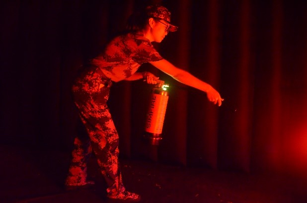 同学们饱满的精神状态。到达体育馆后同学们以连队为单位分批次参与演练。首先进行的应急逃生演练,同学们捂住口鼻,依次进入没有光照,烟雾弥漫的模拟室中。在回环的室道内,同学们紧贴墙壁,降低重心,随着应急逃生指示灯的指引,顺利完成了演练。而后进行的是模拟灭火演练,专业人员向同学们详细地讲解灭火器的使用方法与灭火要领,随后同学们按列依次进入消防演练屋内,按部就班,对准火焰根部,成功将火扑灭。最后同学们在教官的带领下有序依次退场。