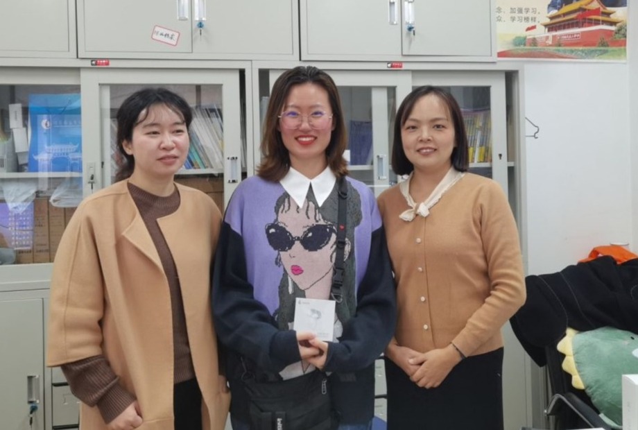 陈晓娟老师与朱婧老师为武雨萌同学颁奖