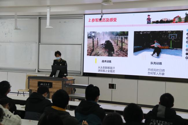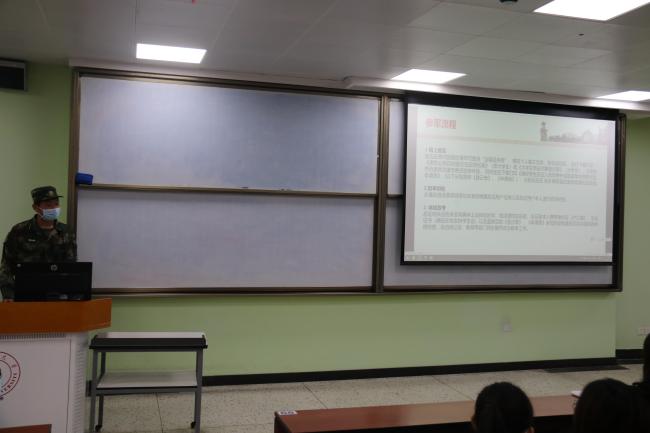江安校区综合楼C107教室及第一教学楼B座B101教室顺利举行。会议主要就入伍学生们在军队中的生活和感悟、参军的报名流程以及入伍后的优惠政策及待遇进行了介绍。2021级辅导员孟滋常老师出席本次会议,一并参与的有及近400名18XXX