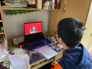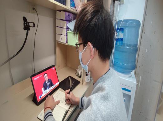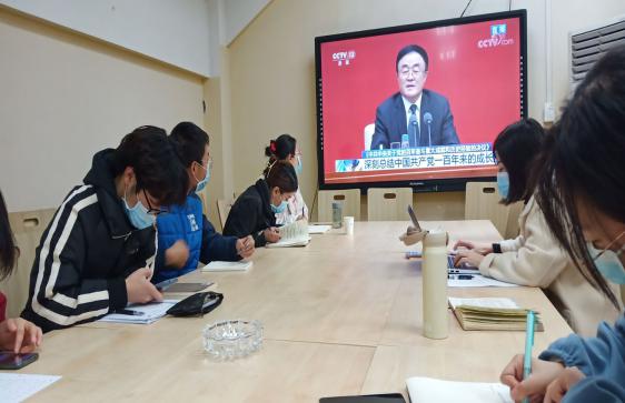 在观看发布会直播之后,学院组织党员与入党积极分子线上讨论观看感想。大家一致表示,深切感受到习近平新时代中国特色社会主义思想的理论品格和历史贡献,并立志要为实现中华民族伟大复兴的中国梦贡献出自己的力量。