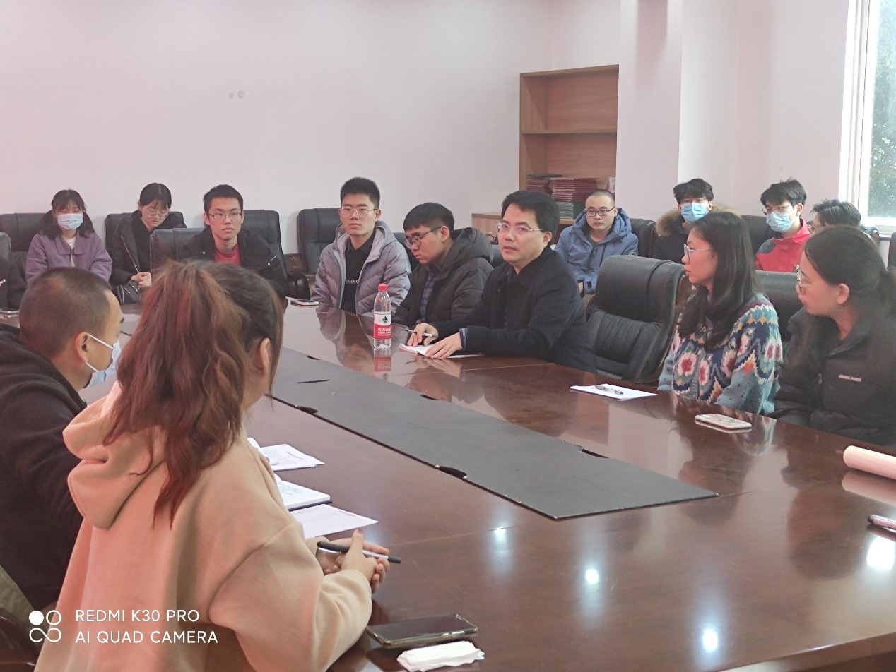 2021级硕博第四党支部于2021年12月4日下午3点在基教A303召开组织生活会,对相关会议精神和思想进行宣讲学习。2021级硕博第四支部委员会书记何鸿添同志主持会议,支部全体党员参加本次活动,学院专职组织员陈炳周副教授到会指导。