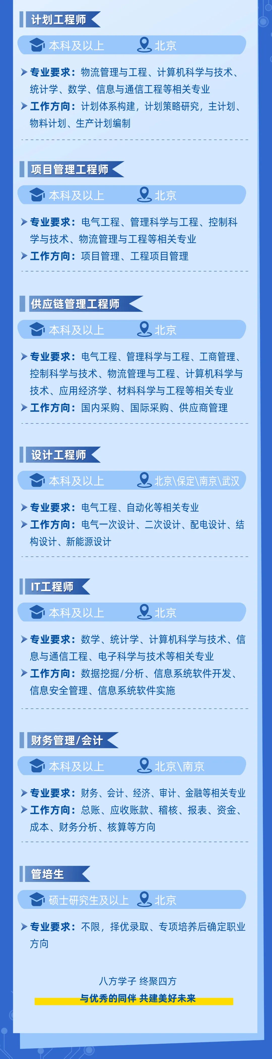薪酬福利:年薪20W+,双一流北京户口落户,八险一金,北京、武汉、南京等全国工作地点可选,公司承诺,签约电网,考研考博士可以无条件解约。