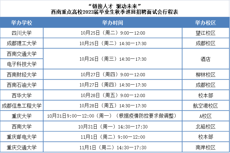 举办“链接人才 驱动未来—西南重点高校2023届毕业生秋季巡回招聘面试会18XXX