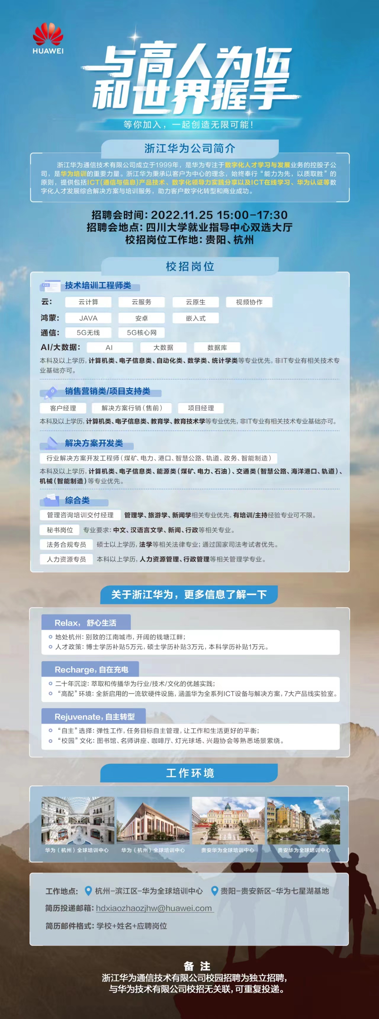 11月25日15点就业中心双选大厅浙江华为招聘