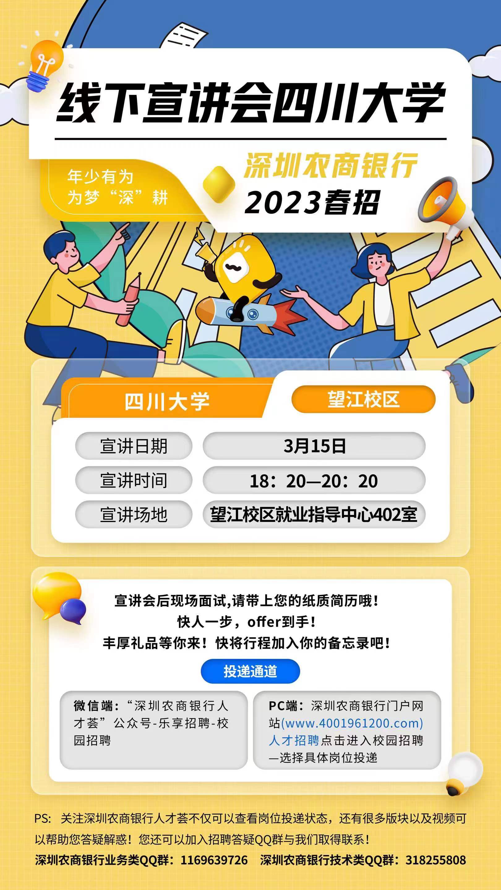3月15日18:20就业指导中心402室深圳农商银行2023届校园招聘