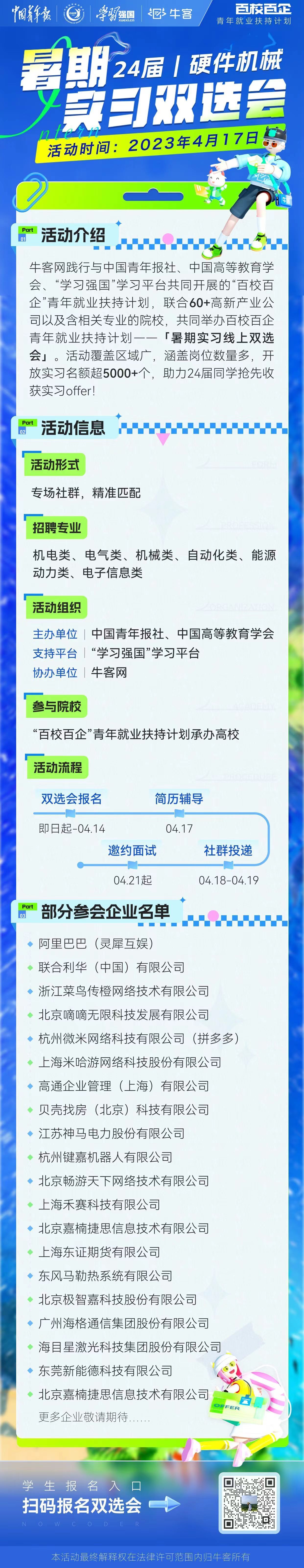 联合60+高新产业公司,特别策划【2024届|暑期实习双选会】,报名入口现已开放!