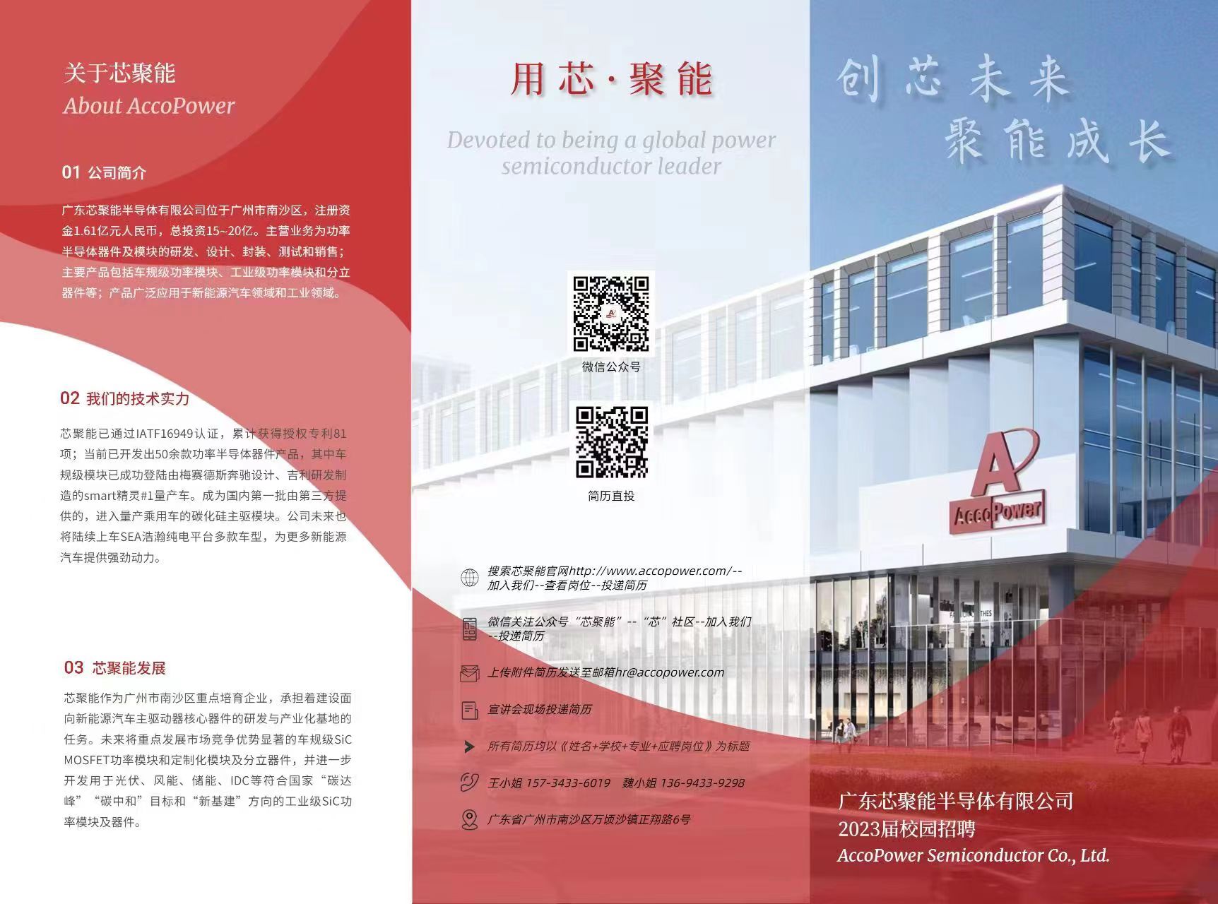 4月19日下午就业指导中心45展位广东芯聚能半导体有限公司2023届校园招聘