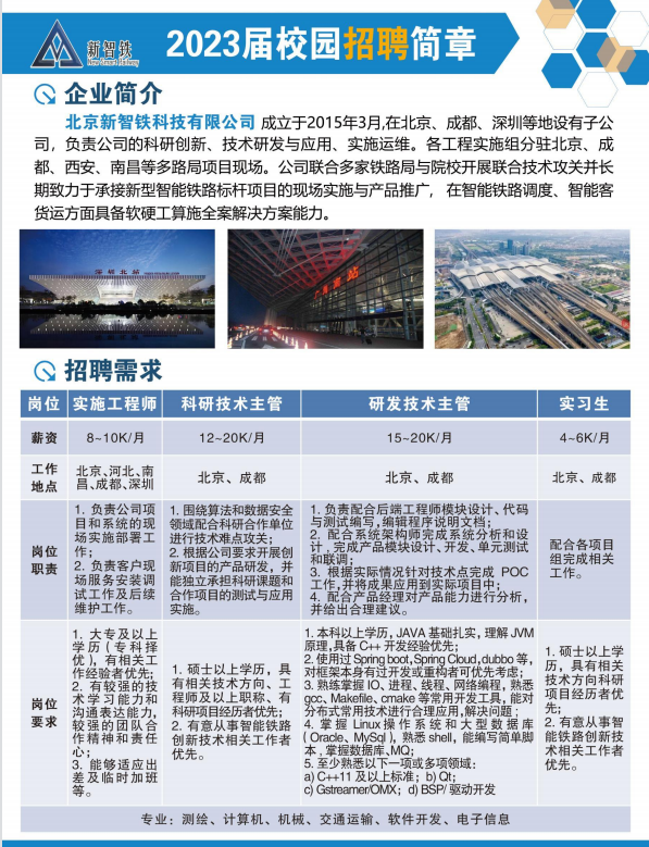 北京新智铁科技招聘(成都、深圳、北京等)