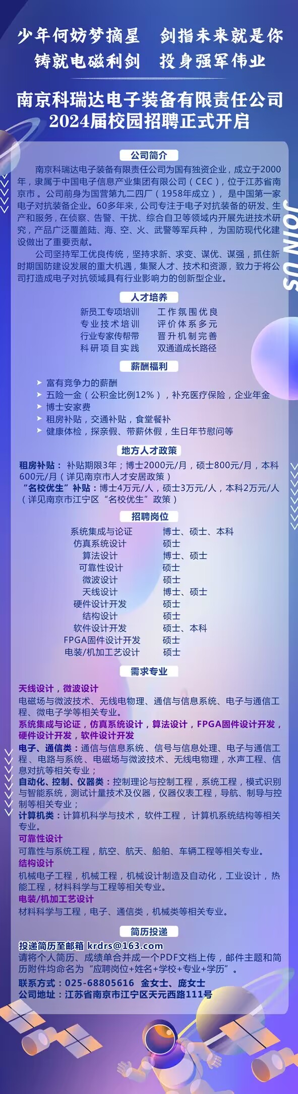 南京科瑞达电子设备有限责任公司2024届校园招聘