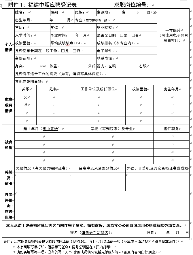1. 福建中烟应聘登记表