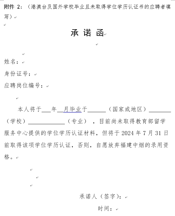 2. 承诺函(港澳台及国外学校毕业且未取得学位学历认证书的应聘者填写)